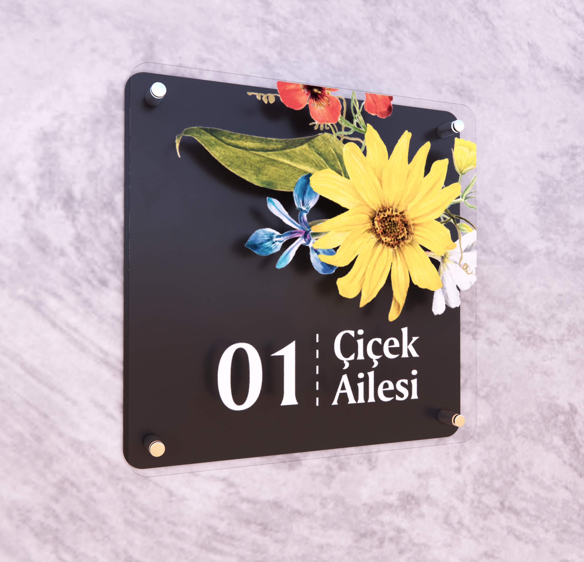 KAPI ÖNÜ TABELASI 20X20 SİYAH ( ÇİÇEK SERİSİ )